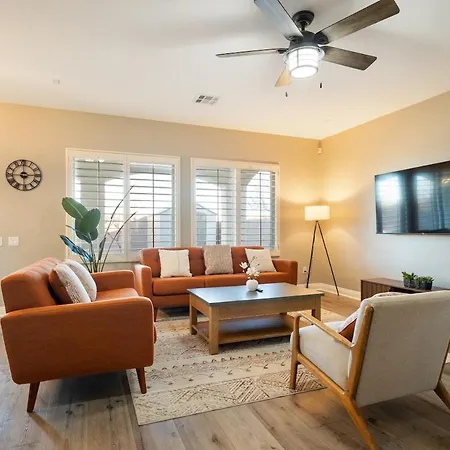 Une cuisine équipée, ainsi qu'un coin repas extérieur, sont disponibles pour les repas. La restauration en libre-service sur place comprend également un four et un lave-vaisselle. Villa est accessible en voiture en 19 minutes depuis l'aéroport international McCarran de Las Vegas.